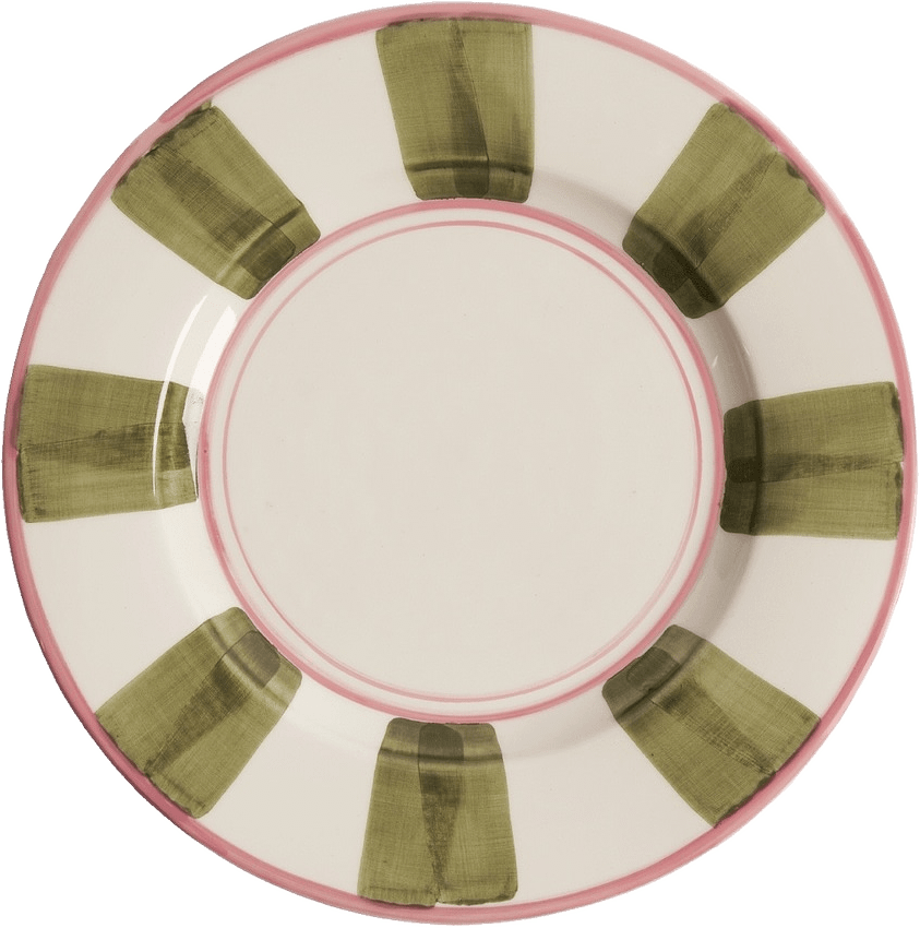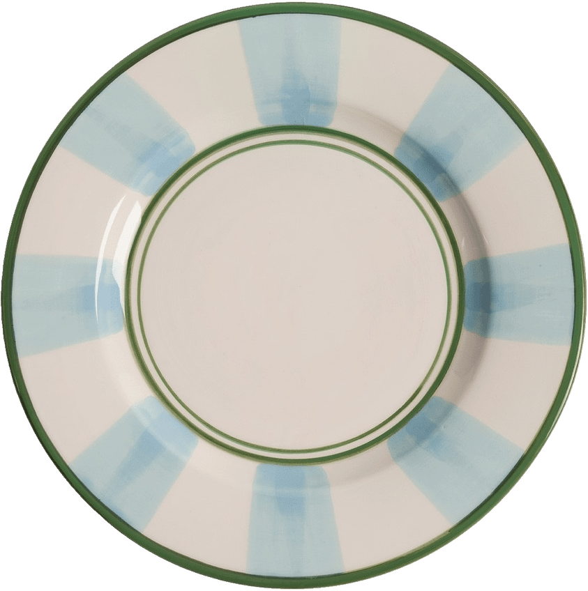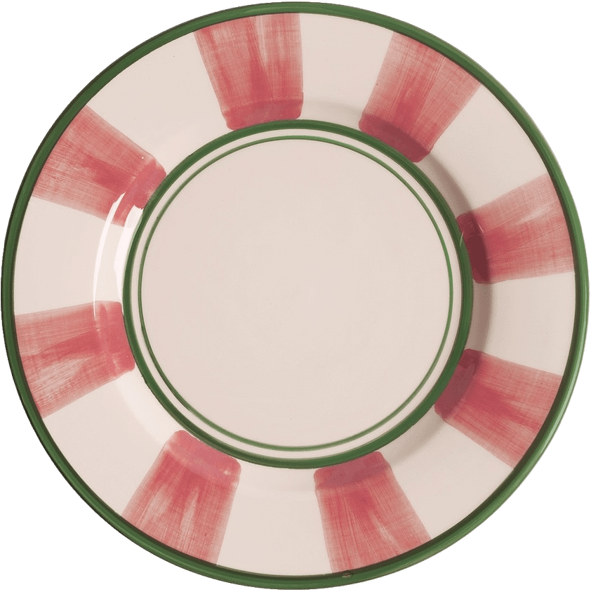 Denna produkt är en del av vår kollektion Circus. Handgjord i Portugal och prydd med handmålade ränder adderar assietten Circus en lekfull och glad känsla till ditt dukade bord varje dag i veckan. Denna assiett passar perfekt med vår större tallrik Cicus, från samma samma kollektion, men fungerar lika bra på egen hand.