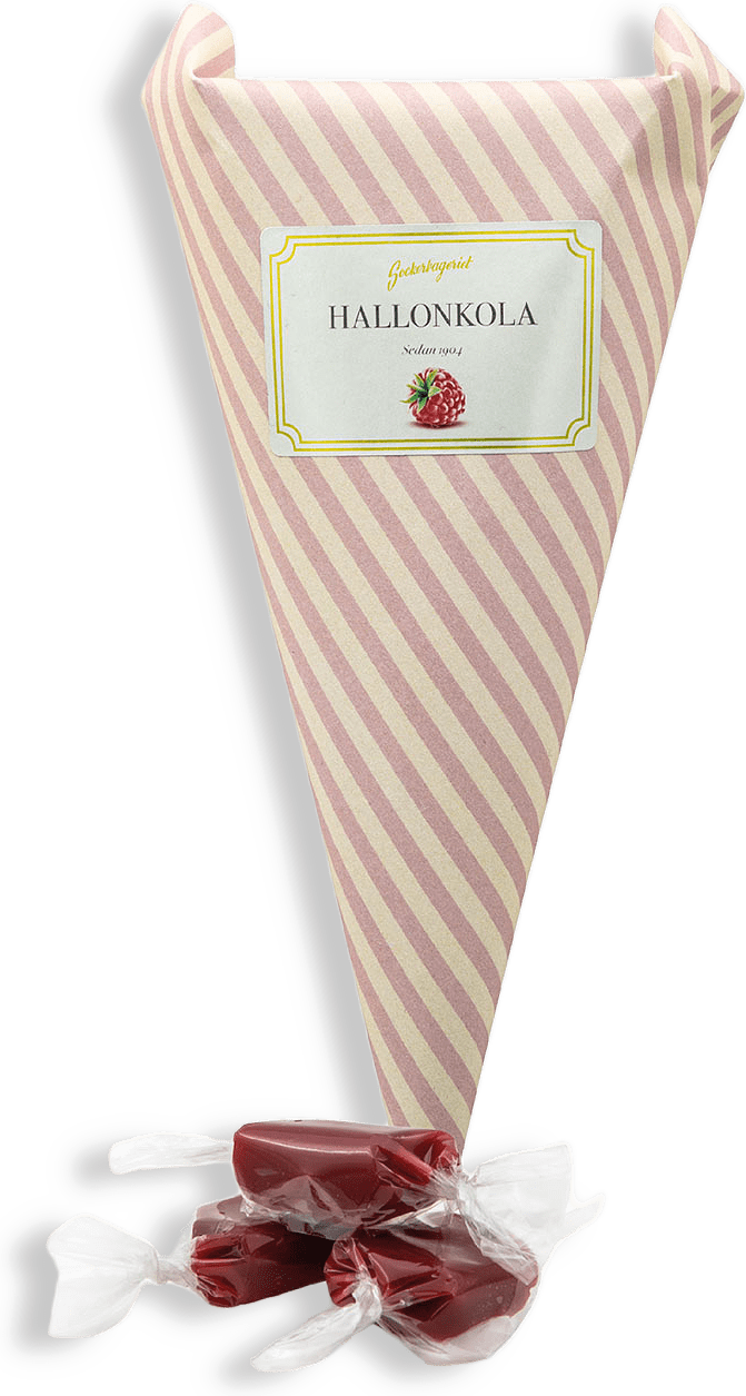 Hallon: Glukossirap, sockrad kondenserad MJÖLK (MJÖLK, socker), socker, vegetabiliskt fett (palm, shea), salt, aromämnen, surhetsreglerande medel (E330), färgämne (E120). Kan innehålla spår av MANDEL. Gräddkola: Glukossirap, sockrad kondenserad MJÖLK (MJÖLK,socker), socker, vegetabiliskt fett (palm, shea), salt, aromämnen. Kan innehålla spår av MANDEL. Citron: Glukossirap, sockrad kondenserad MJÖLK (MJÖLK, socker), socker, vegetabiliskt fett (palm, shea), salt, aromämnen, färgämne (E160a), surhetsreglerande medel (E330). Kan innehålla spår av MANDEL.Sockerbageriet Kolor i strut