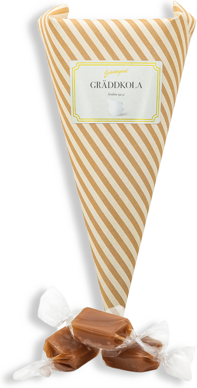Gräddkola: Energi 1770kJ/420kcal, fett 11g varav mättat 5,8g, kolhydrater 79g varav sockerarter 56g, protein 1,9g, salt 0,79g, fiber <1g.