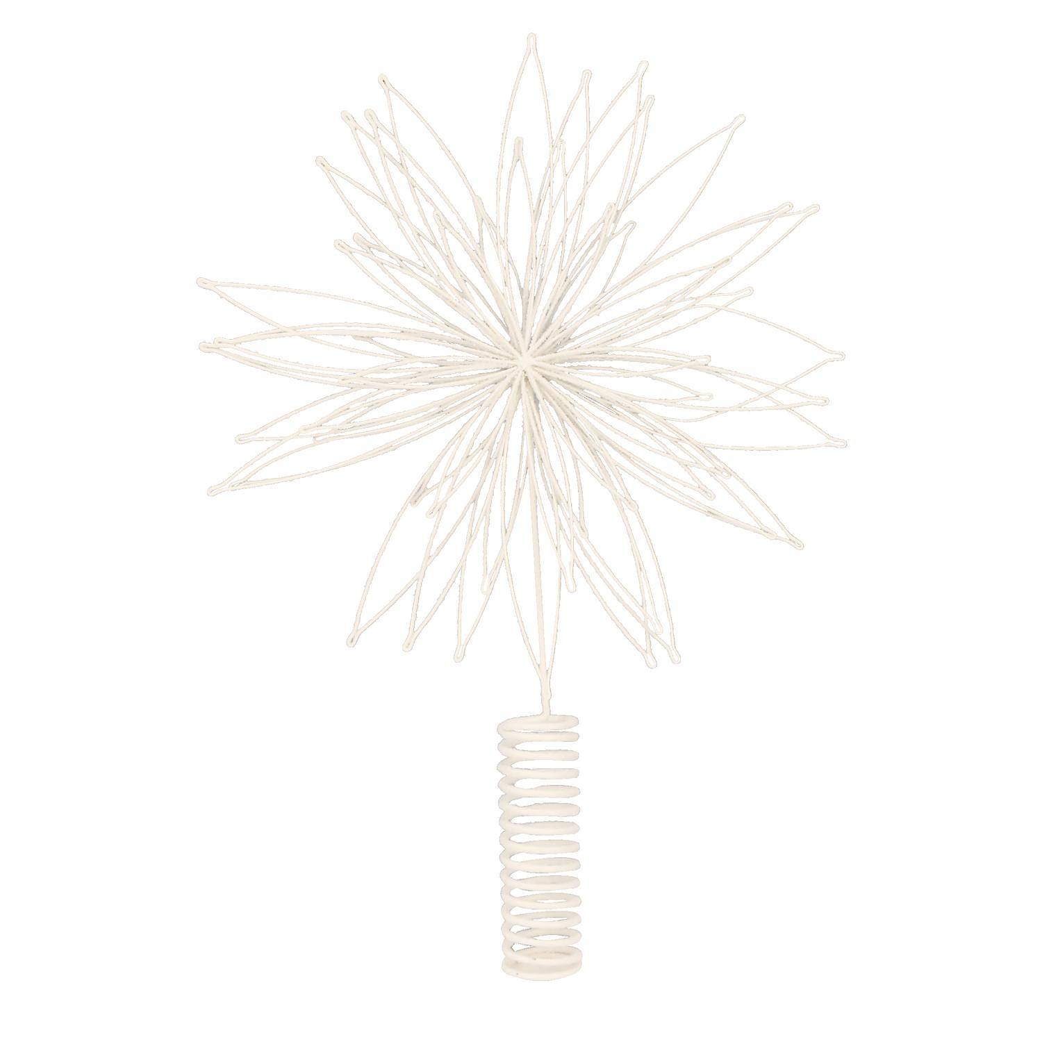 Dekorera din julgran med en vacker och unik toppstjärna i vitt snöglitter eller i guld. Stjärnan pryder alla granstorlekar på ett glimrande sätt. Tänk på att höjden ökar något på granen med en toppstjärna. Blir det tight går det alldeles utmärkt att knipsa av toppen. En stjärna gör att granen glittrar alldeles extra. Denna toppstjärna är något speciellt. Håller du med?