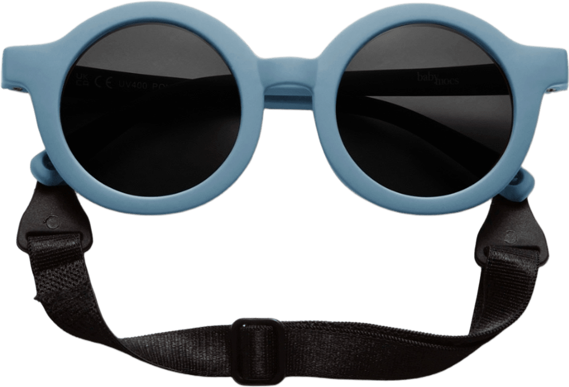 - Ett justerbart och avtagbart band ingår för att hålla solglasögonen på plats – även på en energisk bebis!