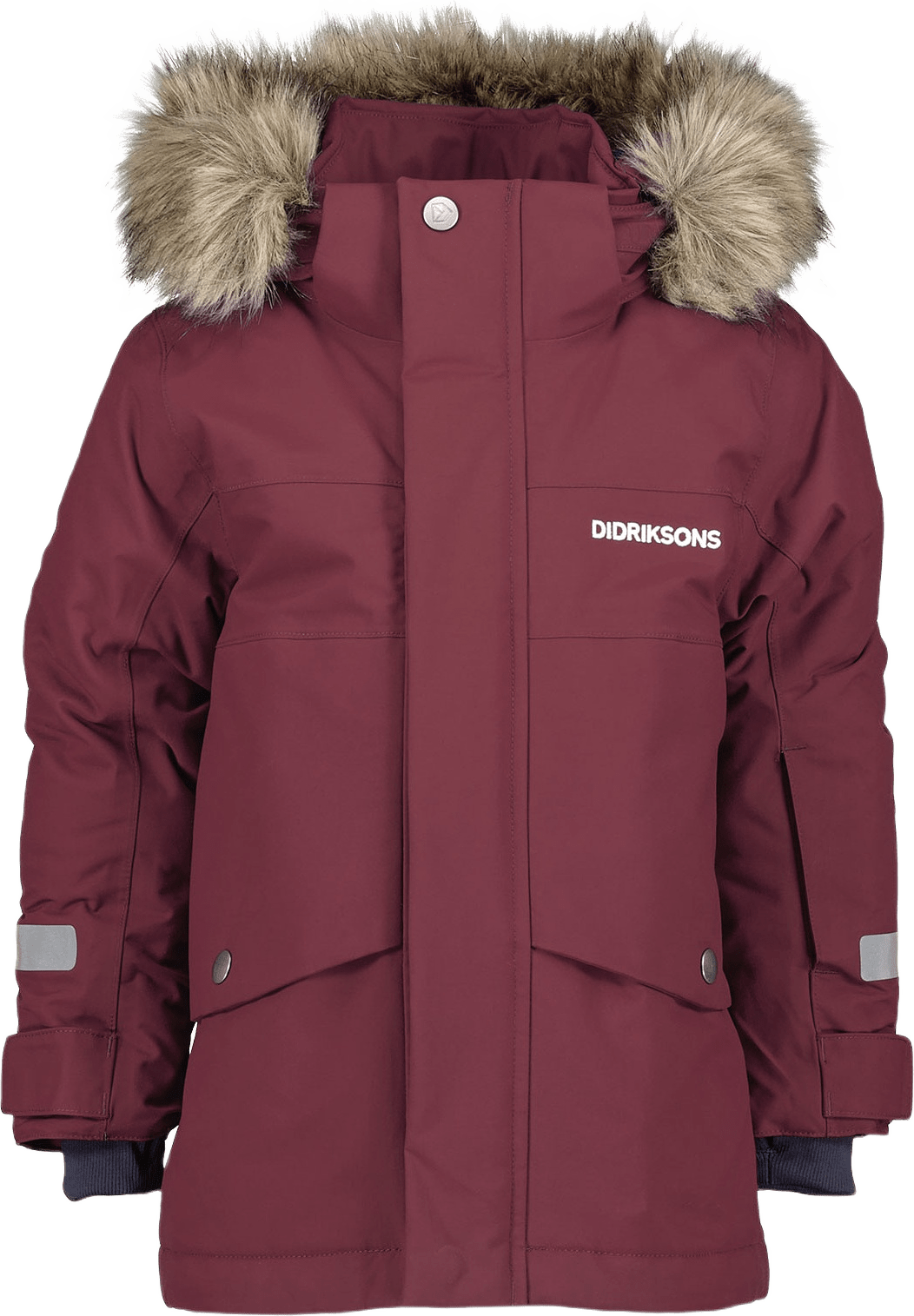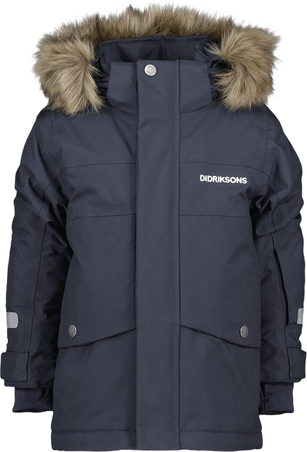 Björnen parka perfekt för de kallare dagarna. Den är helt vatten- och vindtät med tejpade sömmar och gjord i ett material som andasr. Parkan har en rak passform och är tillverkad i ett slitstarkt polyamidväv. Den har avtagbara huva och är försedd med avtagbar syntetpäls för extra skydd. Ärmsluten är elastiska och justerbara med kardborre, och har även en ögla för fastsättning av vantar samt tumhål för extra värme. Parkan har en praktisk namnlapp med plats för flera namn, vilket är perfekt för den som ska ärva eller köpa begagnat. Framfickorna stängs med kardborre och har en ögla inuti för att fästa en reflex. Dragkedjan framtill är skyddad av en slå och har en hakskydd för att undvika skav mot hakan. Fodrad.