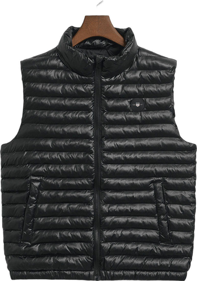 Designed for a sporty look with a shiny effect, this lightweight padded vest for teens adds warmth without the bulk, courtesy of its recycled synthetic padding. Made for a regular, unisex fit, it features horizontal quilting, a stand collar and a sleeveless design. Details include a water-repellent shell, a soft elastic hem, welt slanted pockets with invisible snap buttons and a front zip closure with a protective chin guard. It's complete with a branded rubber badge placed at the chest.