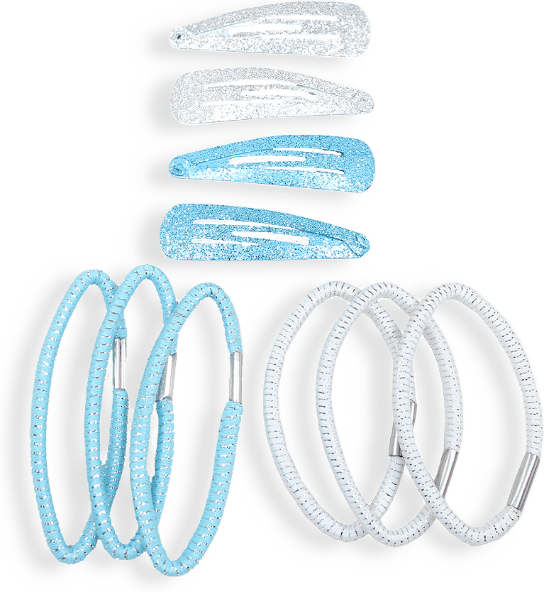 2 par hårspännen 5 cm och 6 stycken hårsnoddar med glitter