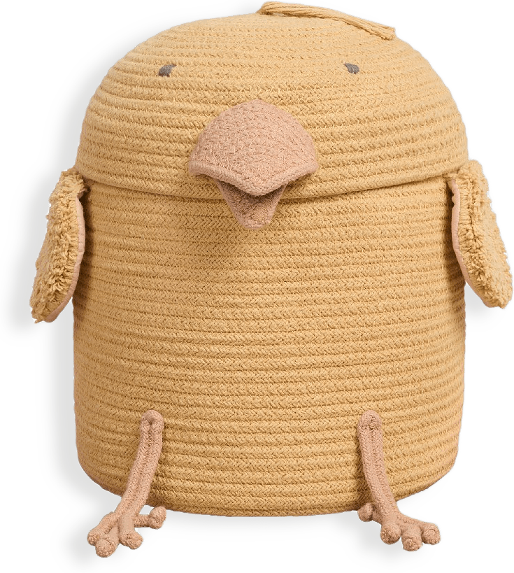 Med en rundad mage för extra utrymme och flätade cirklar som nos, är Peggy the Pig-korgen handgjord med flätade snören av fibrer från återvunna PET-flaskor blandat med vår rosafärgade bomull. Rosa canvasöron och en krull på svansen fulländar det charmiga utseendet på denna korg.