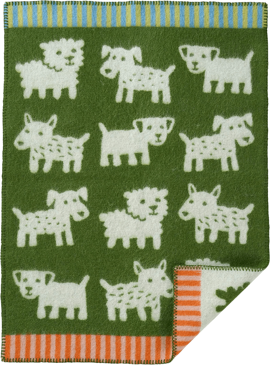 Voff är designad av Bengt & Lotta och är en filt tillverkad i 100% lammull. Filten har ett lekfullt mönster med motiv av människans bästa vän, hunden. Underbar filt att pryda spjälsängen med eller att ha i barnvagnen under promenader.