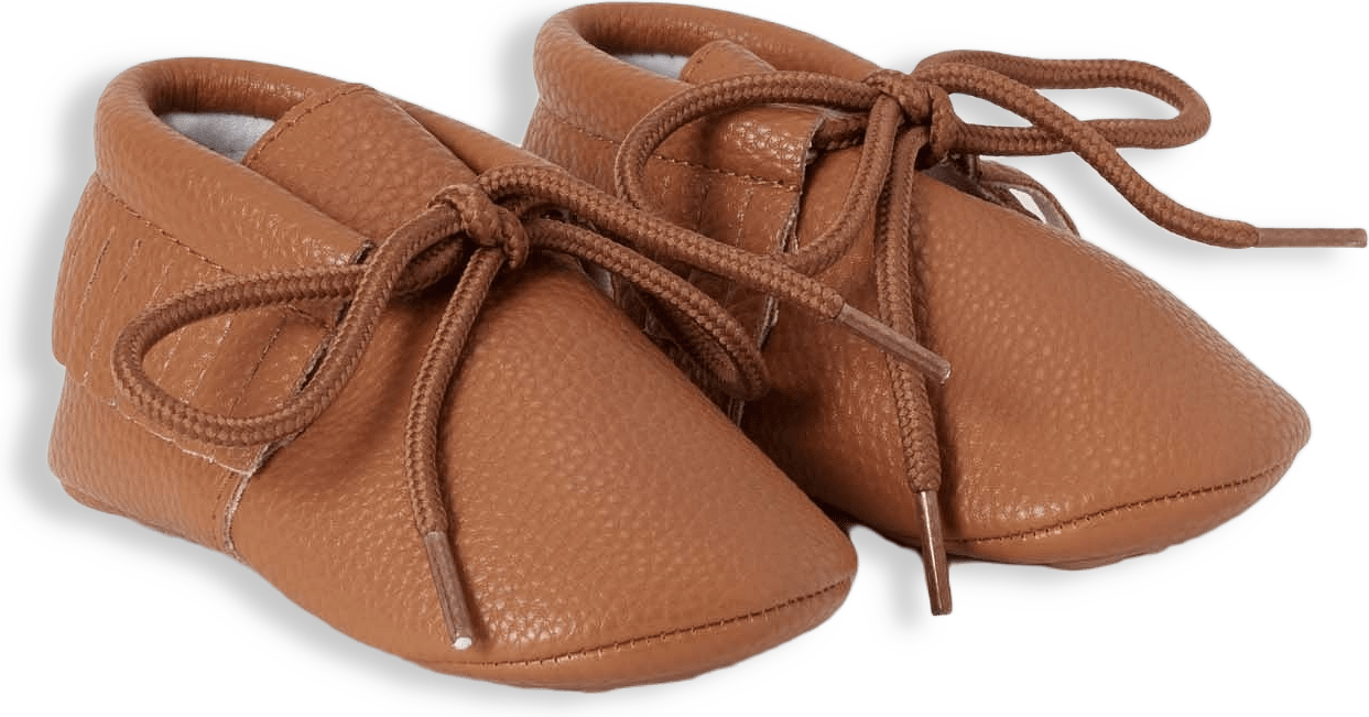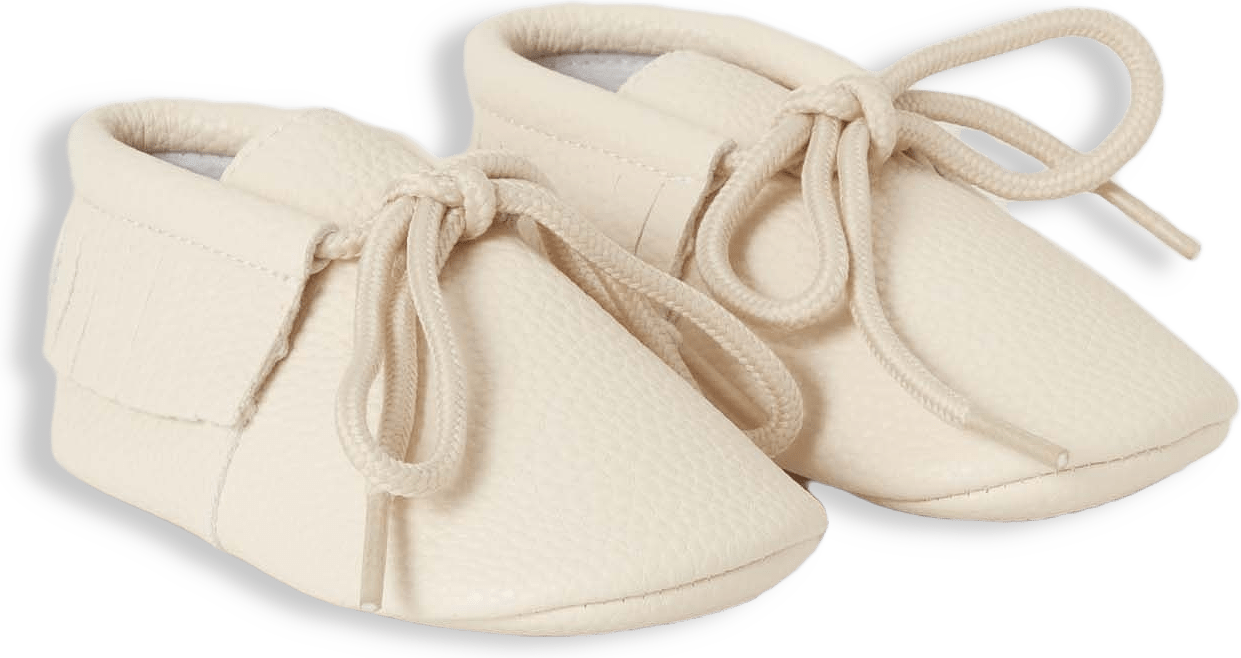 Mockasin med snörning. Med mjuk sula för den minsta och greppvänlig gummisula från 6 månader och uppåt.