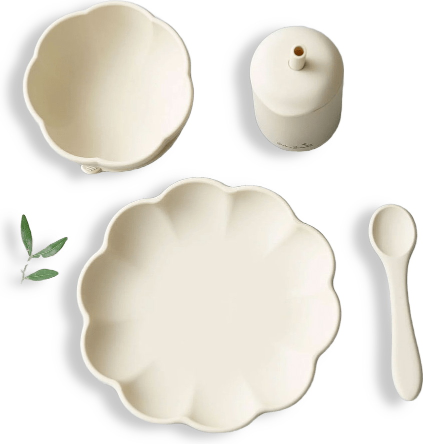 Silikontallriken och skålen har en sugfunktion som fungerar på jämna och plana ytor och som håller dessa på plats och därmed minimerar spill för den lilla som håller på att lära sig äta själv.