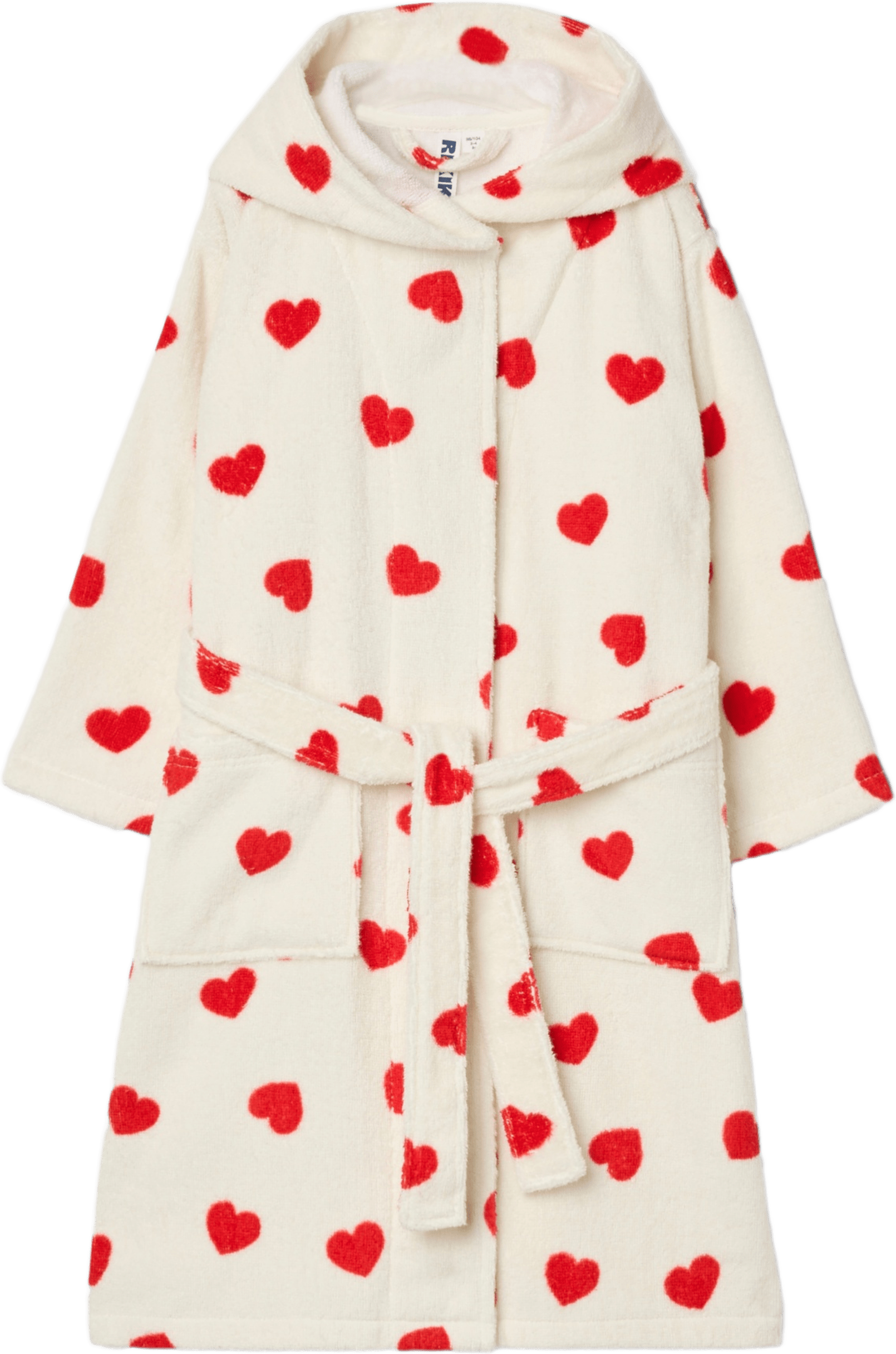 Perfekt frotté till barnbarnet o gullig med alla hjärttryck! Skön att ha på sig efter badet o torkar upp efter allt ev vatten.