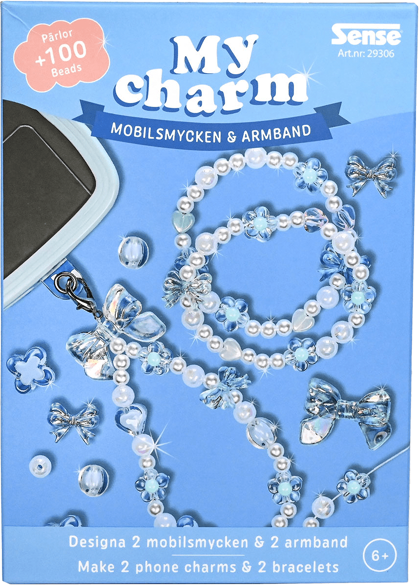 Ytterlager: Plastpärlor (PS, ABS, PMMA), Snören av Polyester, Hållarkort av PET, Karbinlås av Metall (FE)