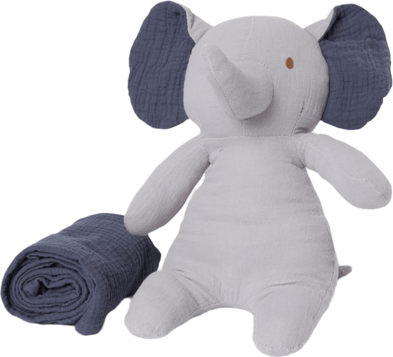 LOUIS gåvokit består av ett gosedjur och en snuttefilt i bomullsmuslin.