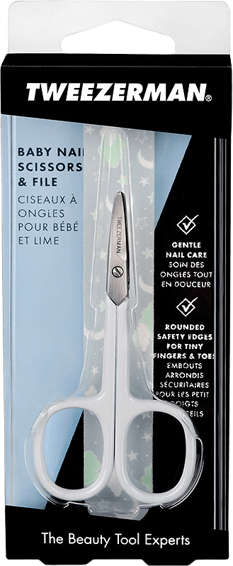Klipp, forma och jämna till ditt barns naglar på ett säkert sätt med nagelsetet Baby Nail Scissors with File från Tweezerman. Den specialdesignade saxen är tillverkad med noggrant utformade och säkra blad som kan användas på spädbarn (från 2 månaders ålder). • Nagelsax med böjda blad och rundad tipp för säker klippning av barnnaglar • Gummiförsedda handtag ger ett säkert och fast grepp • Saxen är gjord av rostfritt stål som är slitstarkt och enkelt att rengöra • Mjuk nagelfil som formar och jämnar till naglarna, vilket förhindrar att barnet råkar riva sig • Nagelvård för barn och baby