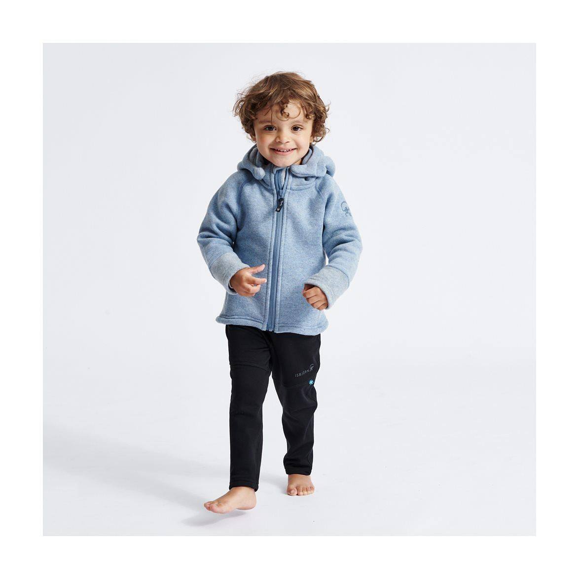 Shaun ull/ fleece jacka i återvunnen italiensk melerad ullblandning med borstad insida. Jackan har en dragkedja fram, med skydd för hakan, två sidofickor med dolda sprialdragkedjor, avtagbar luva som på alla våra överdelar för barn och mjuka muddar med tumhål. Shaun passar perfekt som den är, eller under en skaljacka, såväl vår som höst, eller varför inte vid t.ex skidåkning på vintern, då det här mellanlagret är bra som extra förstärkning under kalla vintrar eller bara som en snygg ull & fleece jacka under sommaren eller i skolan.