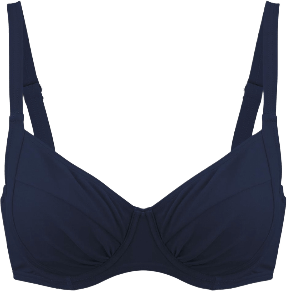 Alanya bikini-bh med bygel från Abecita. En bikiniöverdel med stadigt foder och sidostöd, som håller bysten på plats. Bikini-behån har klädda och lätt vadderade axelband för maximal komfort. En enkel och snygg bikini-bh som verkligen sitter som en bh. De ofyllda kuporna ger snabb torktid. Finns i upp till F-kupa.
