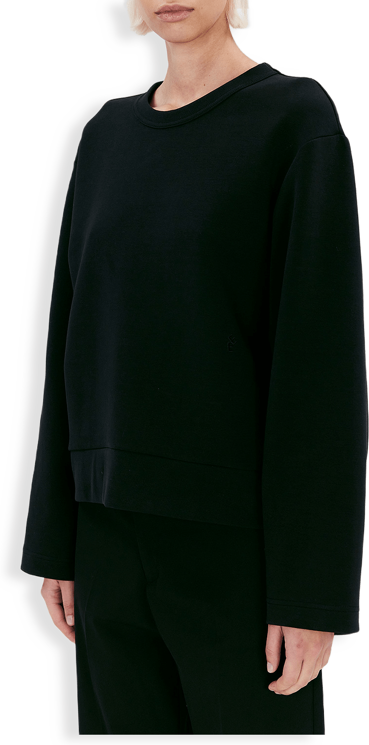 Alba är en boxig sweatshirt tillverkad i Double Face Knit. Materialet är torrt, krispigt och dubbelsidigt, vilket ger plagget mycket struktur och en extra lyxig känsla.  Detaljer inkluderar en rak ärm, logobrodyr i ton-i-ton samt ribbstickad nederkant och halsringning. Bär Alba när komfort regerar över allt annat.