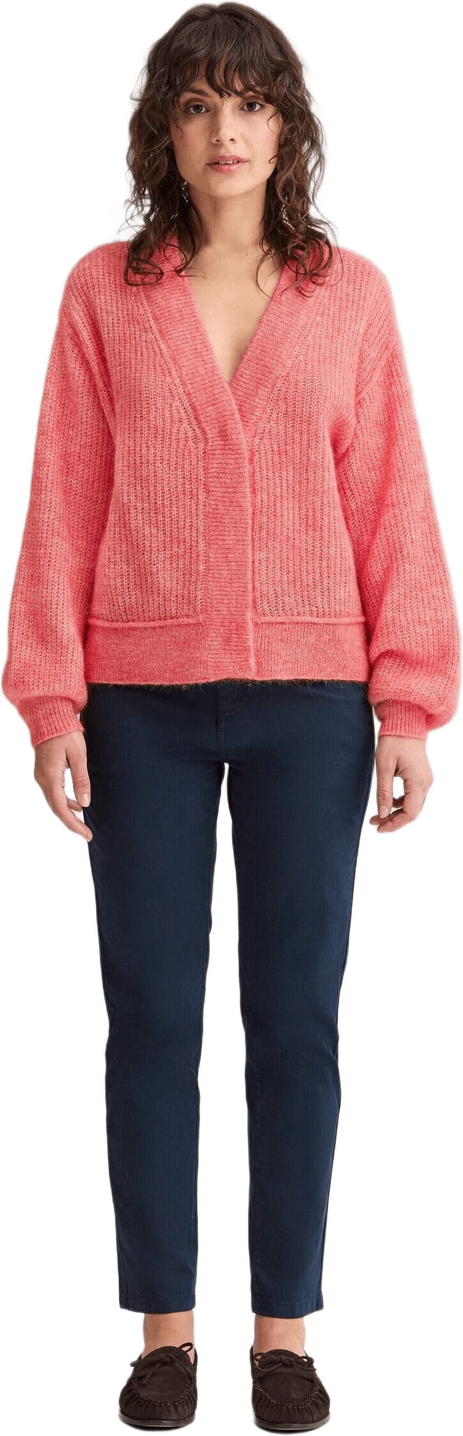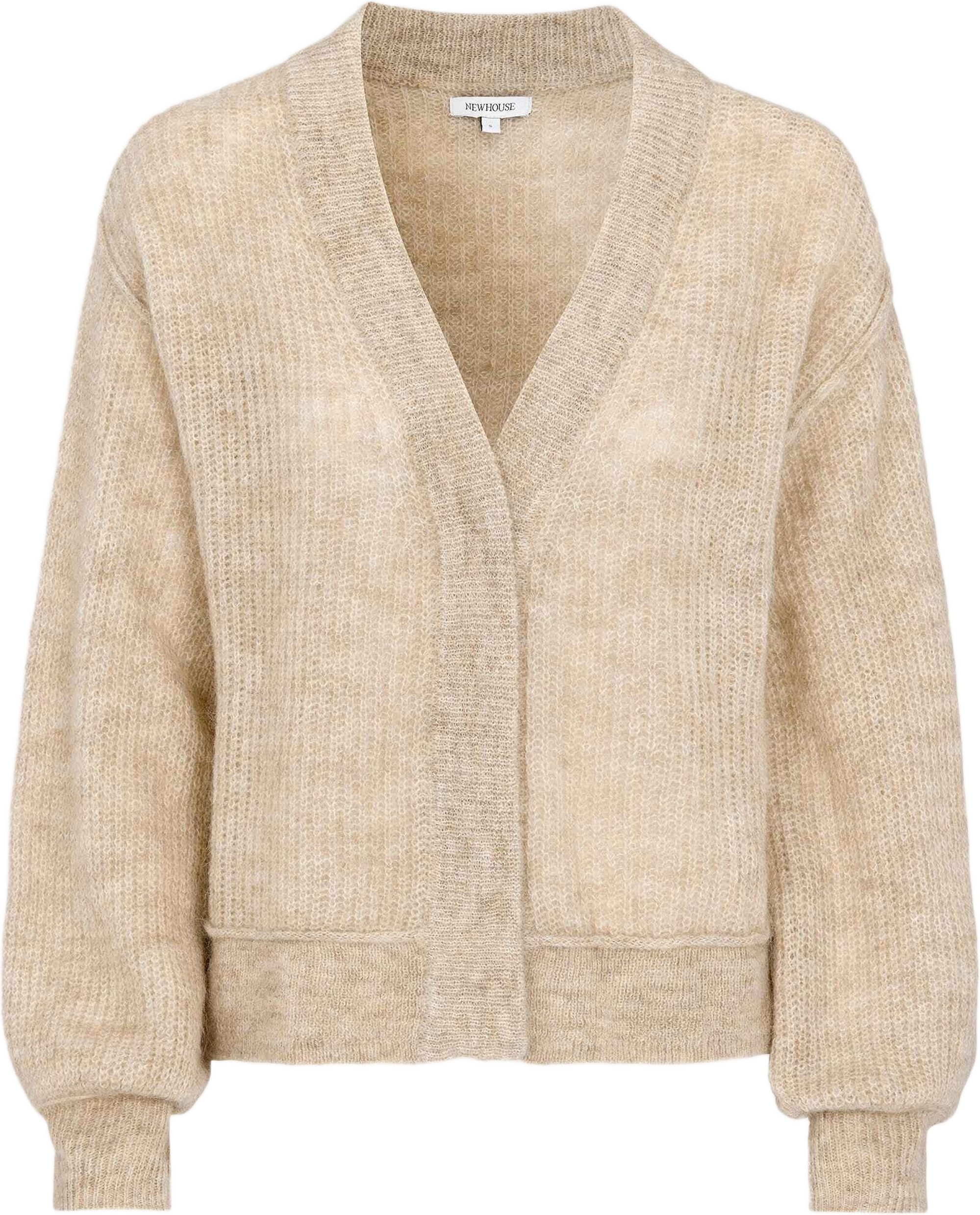 Luftig kofta i en mjuk mohairblandning som ger ett lätt och voluminöst uttryck. Modellen har råskurna sömmar och ribbade avslut som ramar in silhuetten.