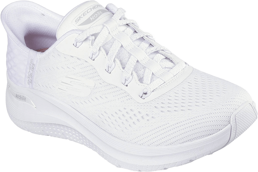 Laced engineered mesh upper with synthetic hot melt overlays, Shock-absorbing midsole, 1 3/4-inch heel height, Machine washable, Skechers® and Arch Fit® logo details, Skechers Hands Free Slip-ins® for an easy fit, Exclusive Heel Pillow™ holds your foot securely in place, Patented Skechers Arch Fit® insole system with podiatrist-certified arch support, Podiatrist-designed shape developed with 20 years of data and 120,000 unweighted foot scans