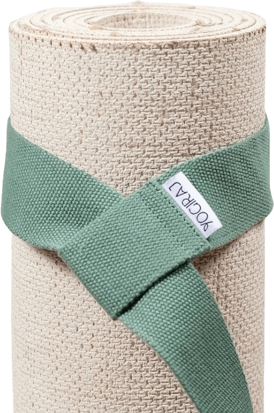 Bär din yogamatta smidigt och lätt med denna ekologiska bärrem i bomull. Justerbar och passar alla yogamattor.