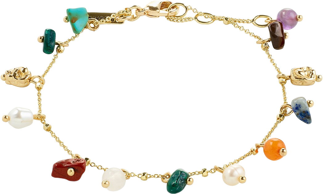 Ytterlager: 50% Mässing, 17% Zink, 27% Ädelsten, 2% Glas, 3% Sötvattenspärla, 1% Plätering