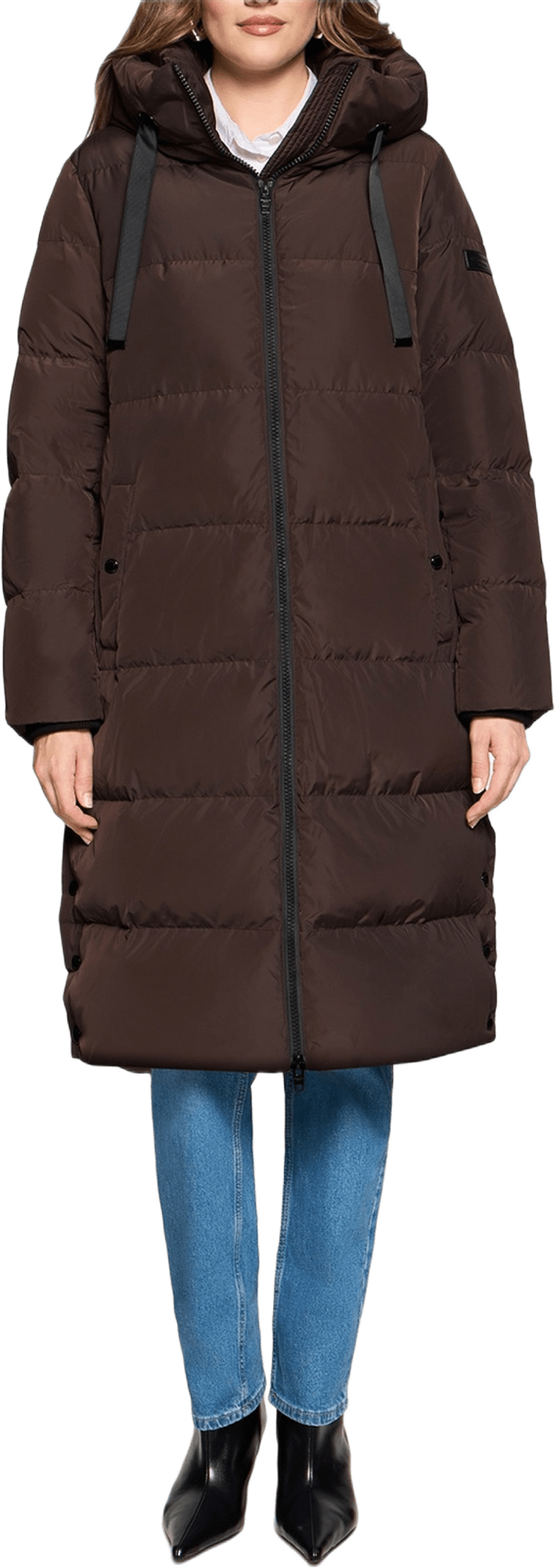 Camila är en lång, vadderad dunjacka som är designad för att hålla dig varm med stil. Den har sportig siluett med genomtänkta detaljer – snedställda framfickor med knäppning, en slank dragkedja framtill, ribbstickade muddar och sidoslitsar med knappar för extra flexibilitet. Med en hög krage och en mysig huva med justerbara dragskor är det ditt vardagliga vinterplagg – där mode möter funktion.
