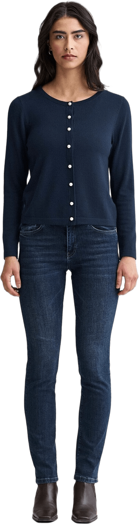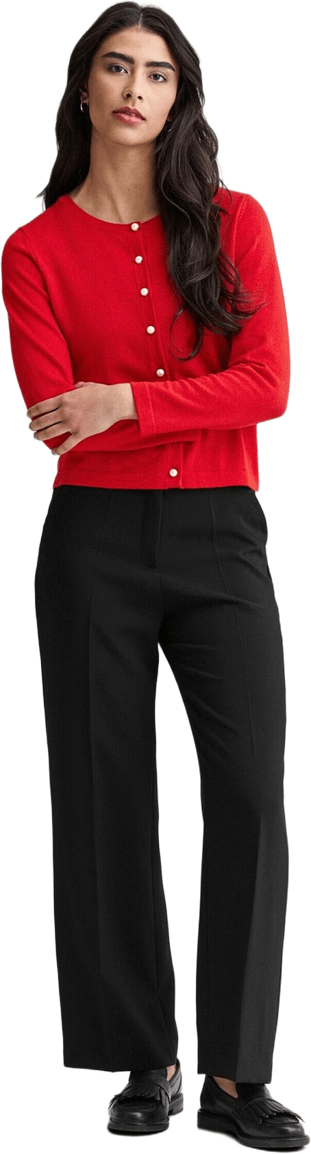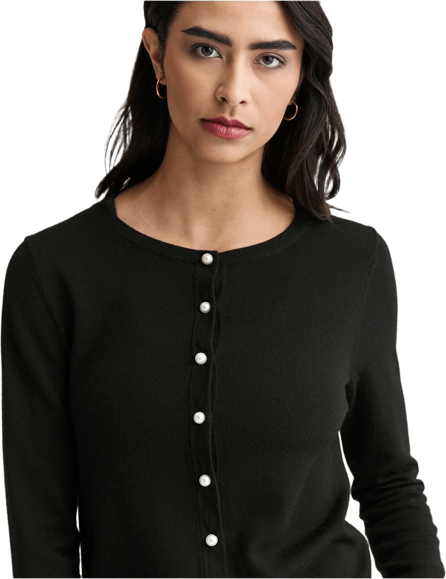 Cardigan i mjuk merinoull med dekorativa knappar i pärlemor. Koftan är det perfekta valet när du vill addera lite extra flärd till din look.