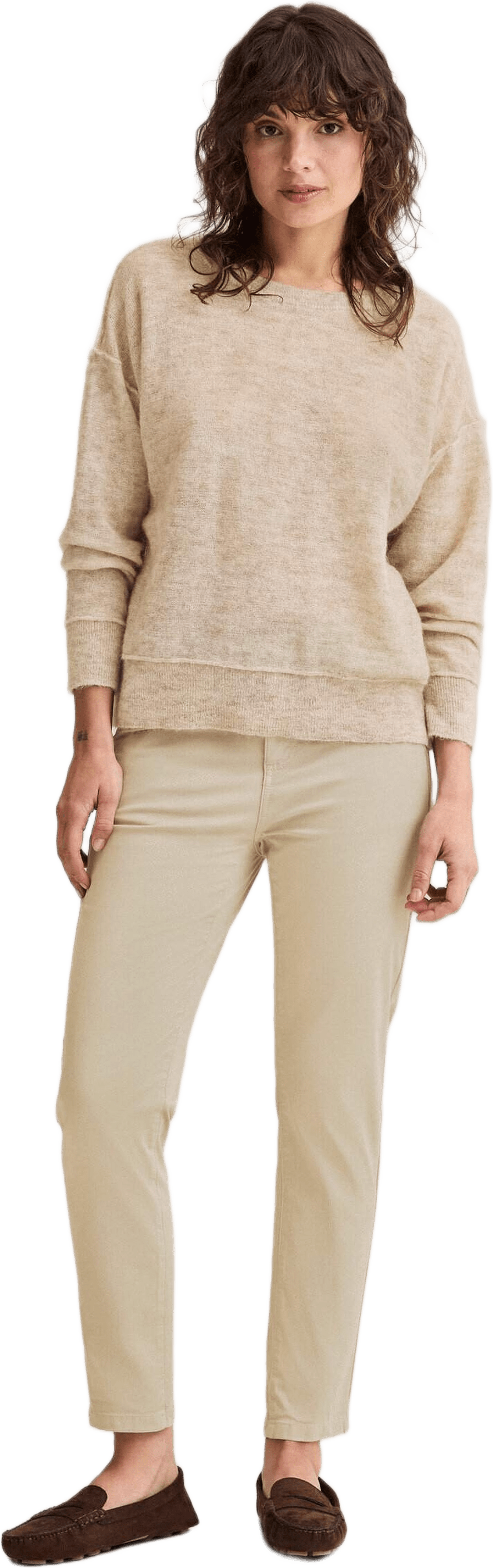 Klassisk chinos med ett smalt, lite croppat ben och normal grenhöjd. Snedställd ficka fram, passpoalerade fickor bak och linning med hällor. Knappen är i hornimitation med diskret logotyp.