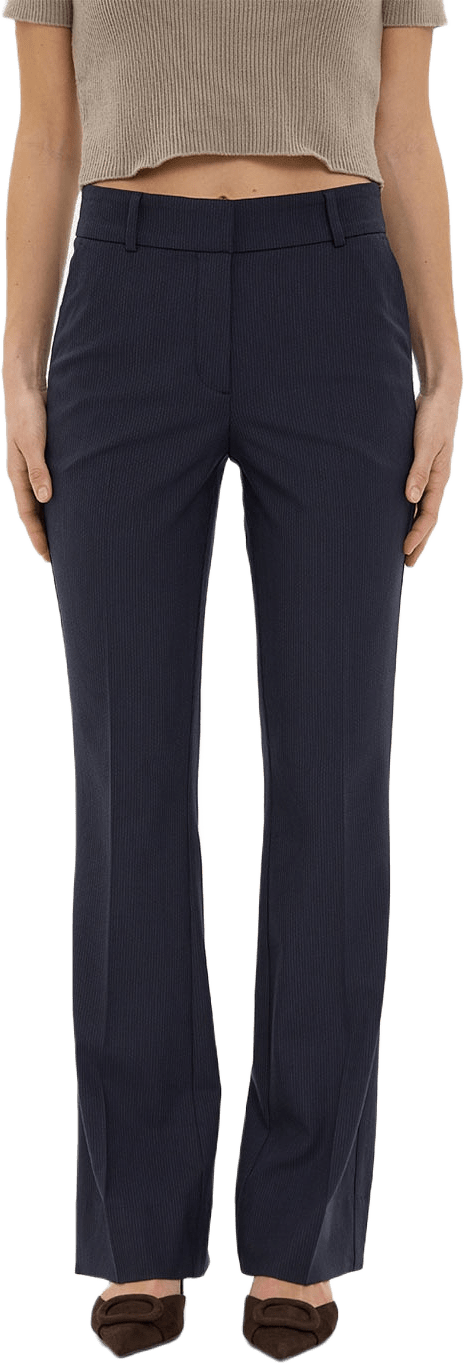 These flared-fit trousers are expertly crafted from mid-weight pinstripe fabric for a polished and comfortable feel. Designed with a mid-rise waist, they sit on the hips, contouring through the thighs before flaring from the knees. Sharp creases enhance their tailored look, while the versatile silhouette make them a perfect choice for multiple styling options. Designed in Copenhagen and made by specialists in Turkey.