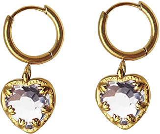 Ytterlager: Rostfritt stål/PVD guldpläterat rostfritt stål, Hjärtan i glas