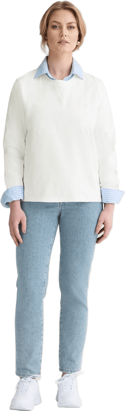 Klassisk collegetröja i organisk bomull med litet tonalt logobroderi på bröstet.