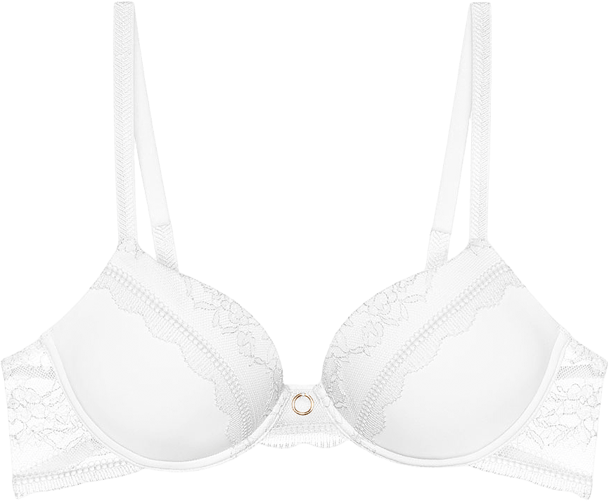 • ”Comfort wire”, en lättare och mer flexibel bygel ger optimalt stöd samtidigt som flexibiliteten bibehålls • Andningsbara och släta spacer-kupor och en touch av spets • Mjuk stretchig blommig spets i två färger en elegant finish • Lekfull nyckelhålsdetalj och guldfärgad ring mitt fram med utsmyckade axelband• GRS-certifierat återvunnet material