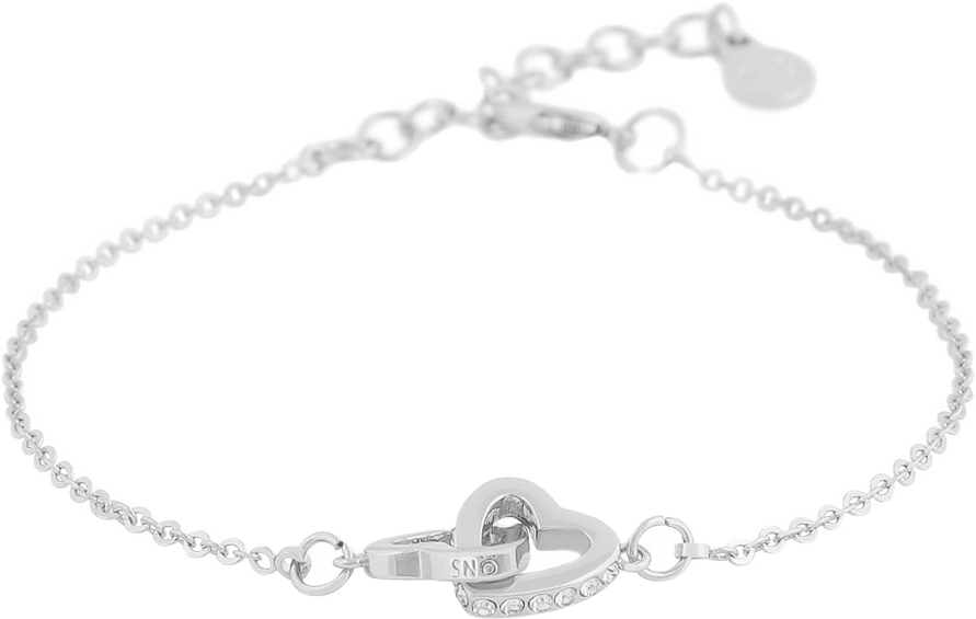 Gulligt kedjearmband med två små hjärtan som är sammankopplade. Storlek: 16-17 cm. Material: Glasstenar med silverpläterad mässing. Nickel testad.