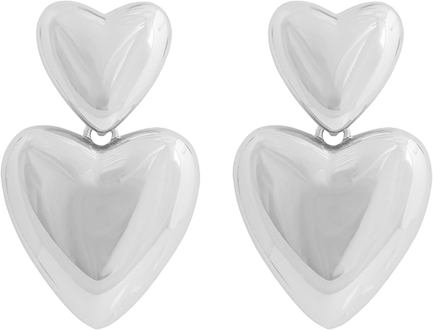 Örhängen med ett litet hjärta ovanpå och ett större hjärta som hänge. En lekfull men ändå raffinerad design som ger smycket en distinkt karaktär.
