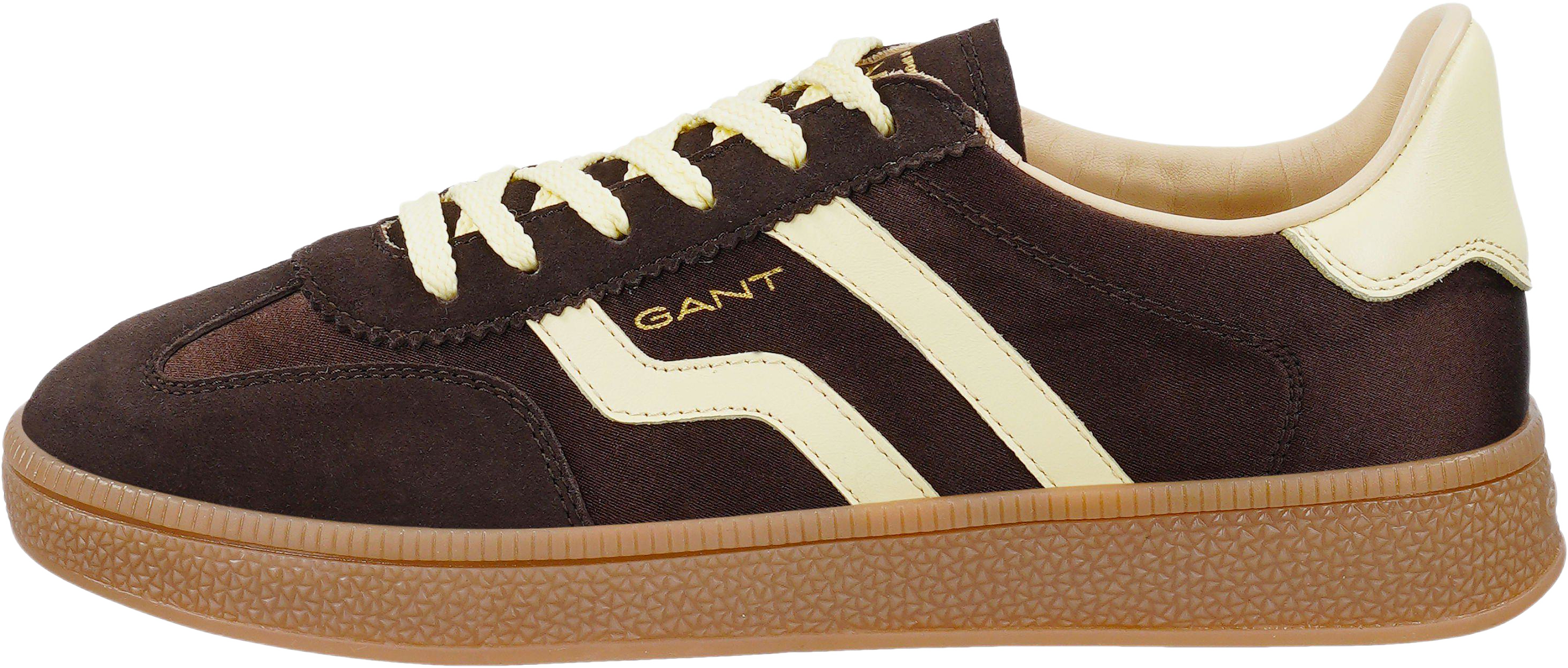 En elegant, retroinspirerad sneaker med en slank silhuett och vintagekänsla. Ovandelen är en mix av mocka, nylon och satin. Läderfoder och en läderklädd innersula ger bekväm komfort. De ikoniska honungsfärgade gummiyttersulorna ger skon dess unika karaktär. Med diskret logotyp på sidan. Sammantaget ett måste för varje kvinna!