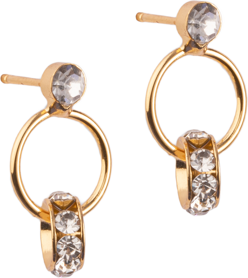 Roséguldpläterat örhänge med klara glaskristaller. Örhänget är 2 cm långt. Nickelsäkert.
