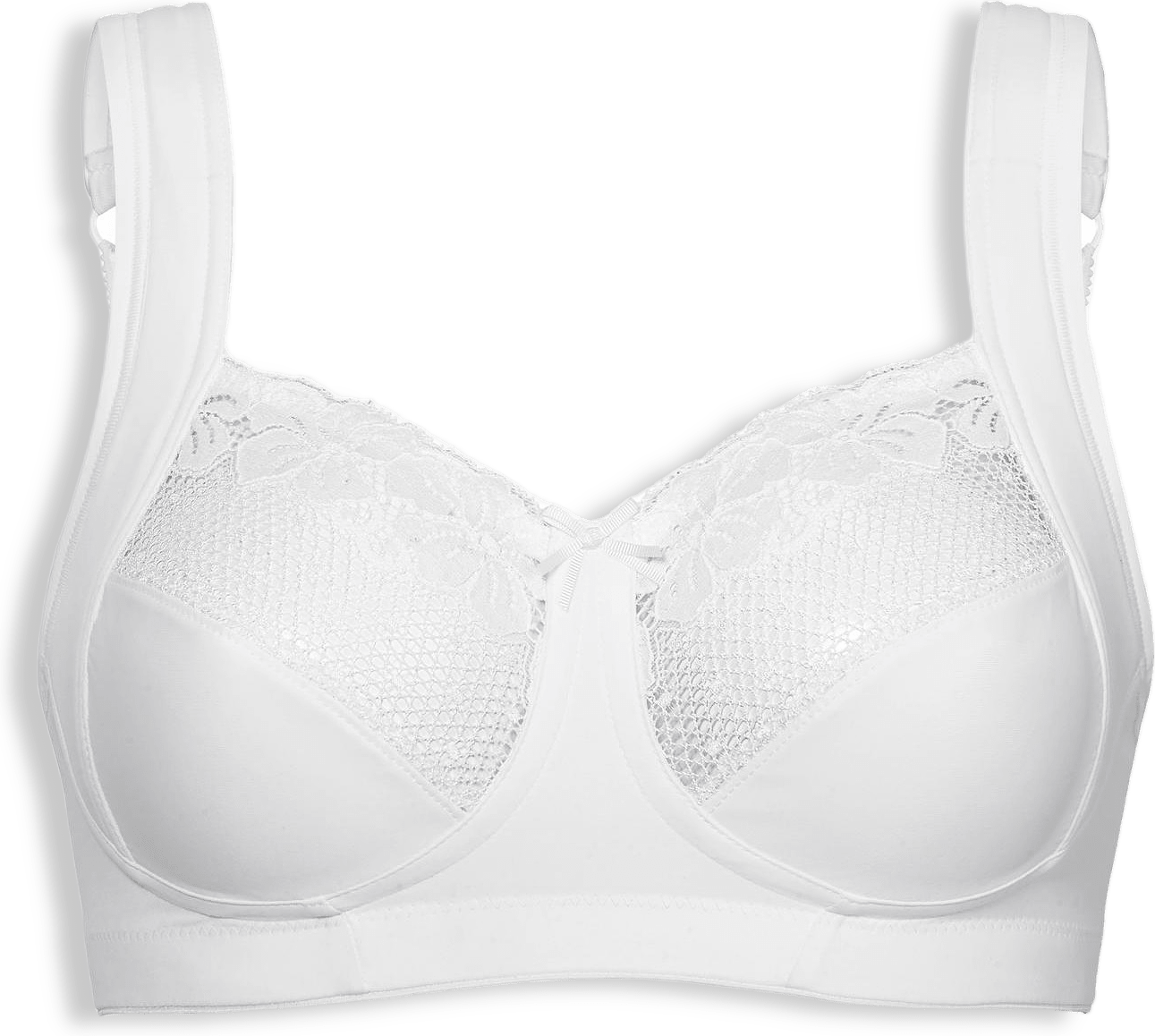 Delight mjuk-bh från Swegmark. En bh utan bygel, som tar dig bekvämt genom hela dagen. BHn har justerbara och vadderade axelband och en bred resår nedtill för extra stöd och stadig passform. Resåren har en flossad insida, och det vadderade stödet i sidan av kupan ger stöd och extra komfort. Ringar och spännen är nickelfria, och hyska och hake vadderad. Tillverkad i OEKO-TEX® material av hög kvalitet.