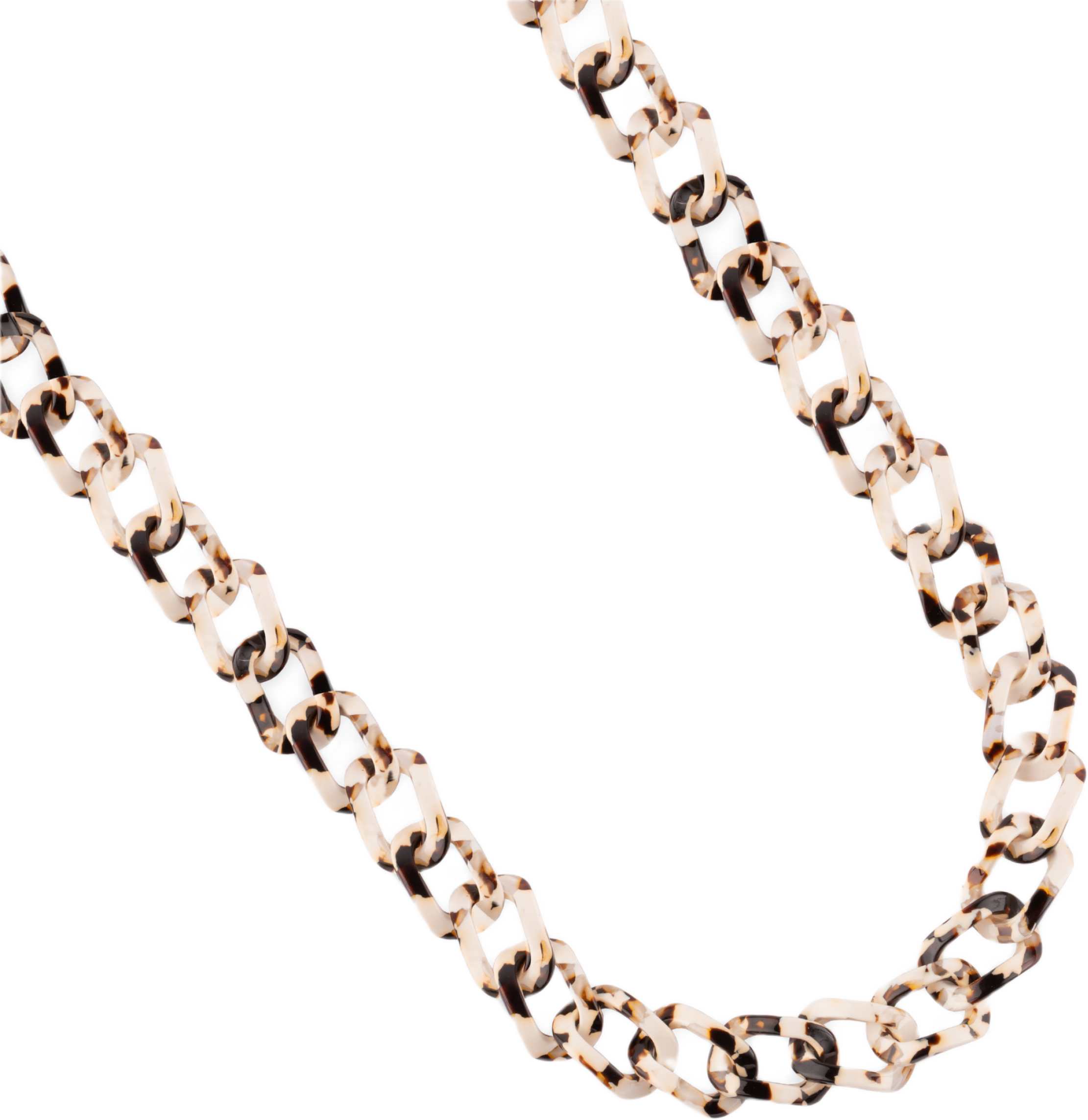 Ett långt resinhalsband som är melerat i många färger. Halsbandet är 80 cm långt och har knäppning. Länkarna är ca 2,2 cm breda. Nickelsäkert