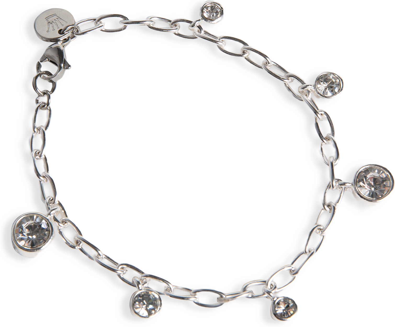 Silverpläterat armband med klara glaskristaller. Nickelsäkert.