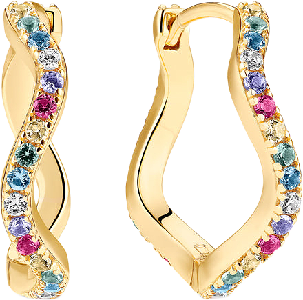 Örhängen av 18 karat guldpläterat 925 sterling silver, polerad yta och handsatta med fasettslipade multifärgade zirkoner.