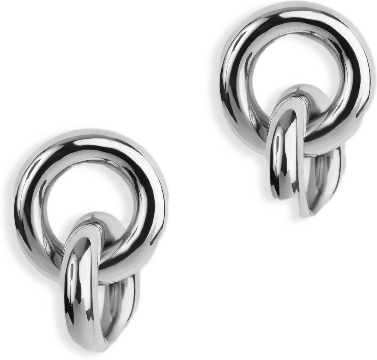 Silverpläterade örhängen med två hoops som sitter ihop. Örhänget är 2 cm långt. Stiftet är i kirurgiskt stål. Nickelsäkert.