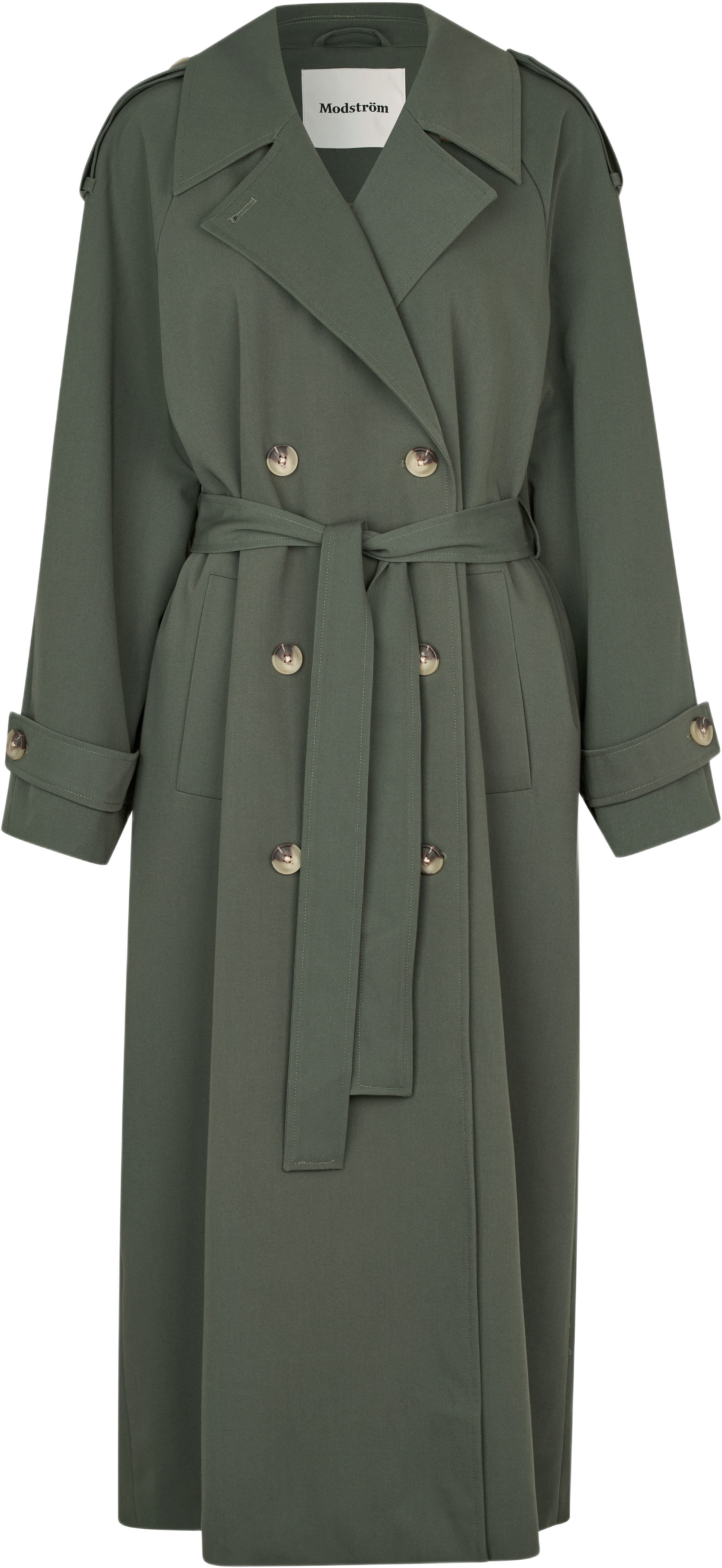 Oversized, dubbelknäppt trenchcoat med knytskärp i midjan för en figurnära passform. EvieMD-jackan har sänkta axlar och långa, vida ärmar för en avslappnad silhuett. Fodrad för extra komfort. Modellen är 175 cm lång och bär storlek S/36.
