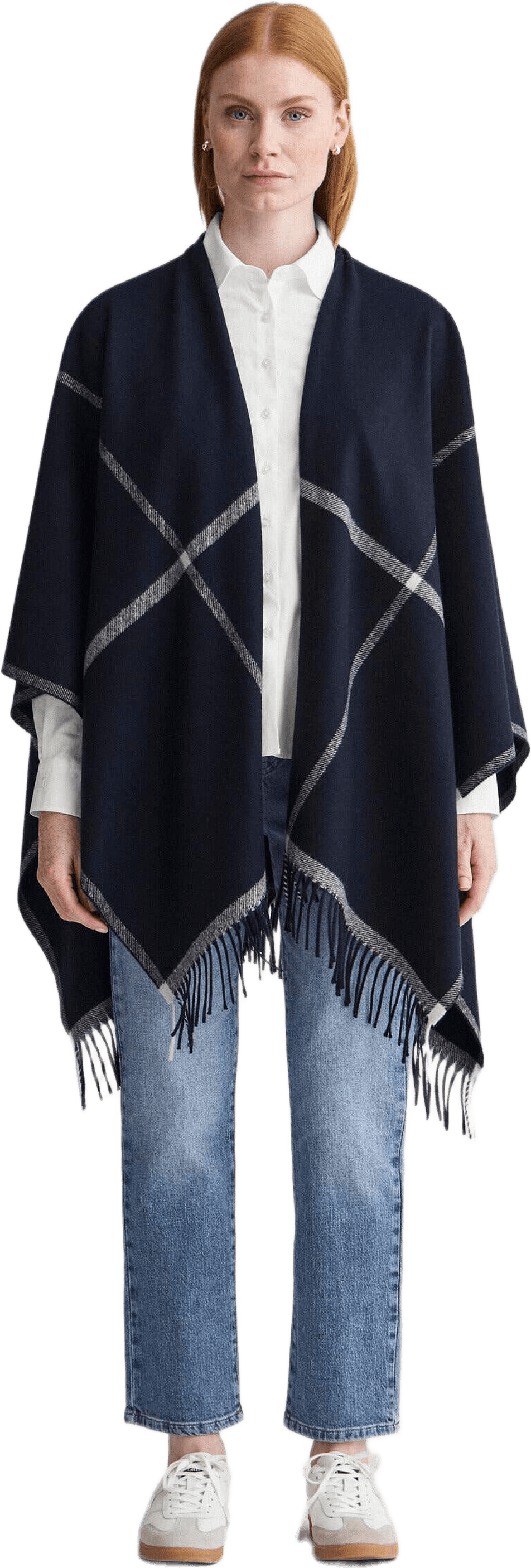 Rutig cape i en exklusiv blandning av ull och cashmere. Den är tillverkad i Italien och har ett vackert fall som framhäver den mjuka strukturen i tyget.