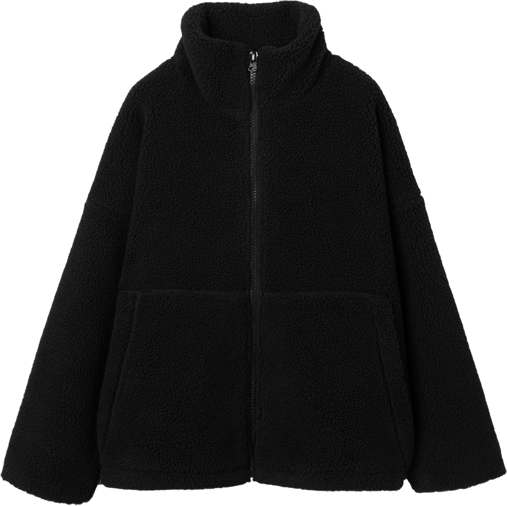 Bred och kort, generös i storlek. Jag är lång, ärmarna kunde varit några centimeter längre men funkar. Gosig jacka i skön kvalitet.
