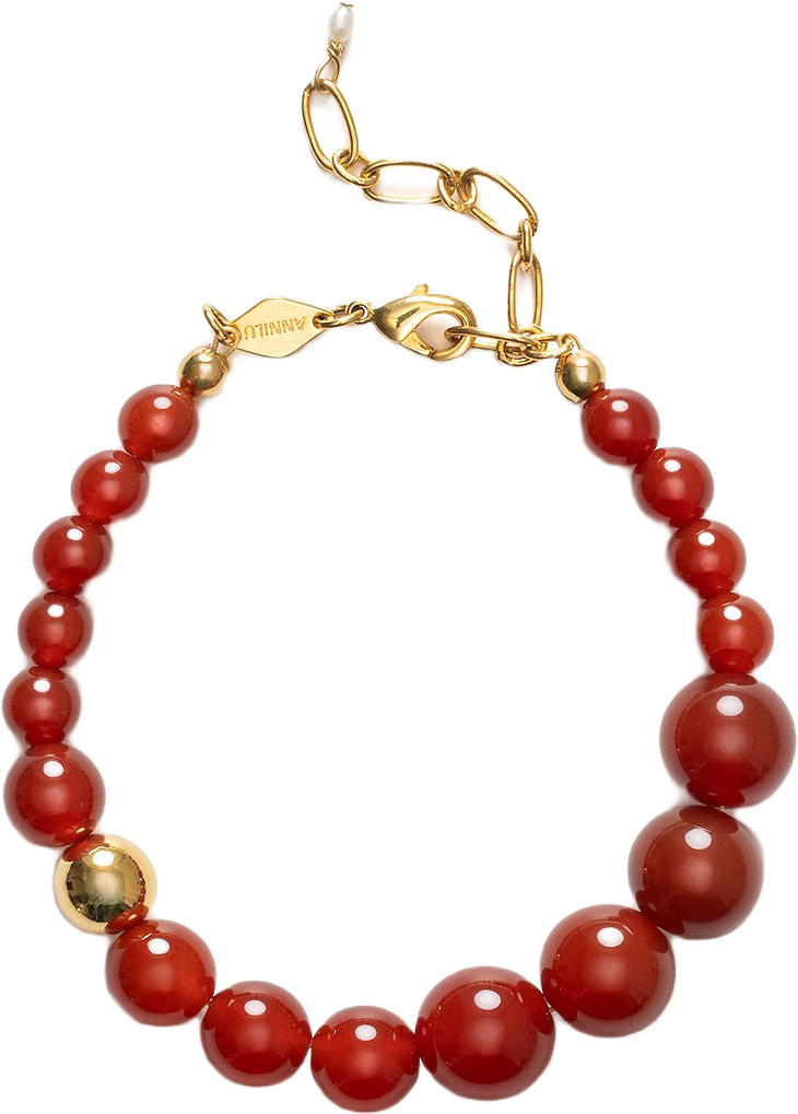 Ytterlager: 18kt gold plated brass with anti-tarnish e-coating. Red jade, cultured freshwater pearl.