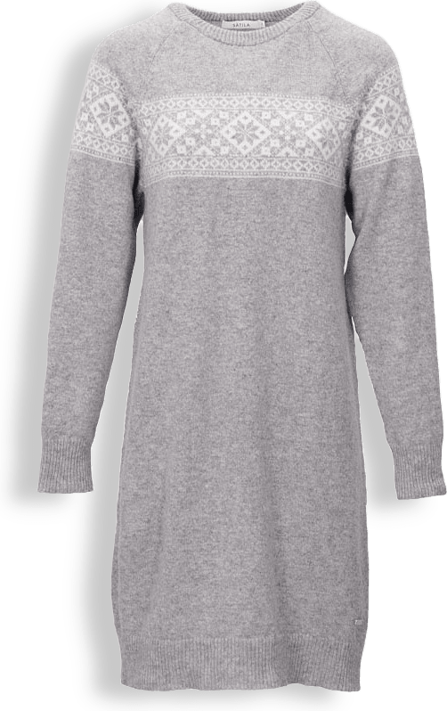 Grace dress är en jacquardstickad klänning i skön och värmande lammull/polyamid mix. Klänningen är stickad i egen fabrik i Sätila, Sverige. Det fina stjärnmönstret härstammar från den populära Grace serien som har ett klassiskt skandinaviskt utseende. Grace dress har en ledig passform. Rygglängd ca 96 cm i storlek M. Damstorlekar.