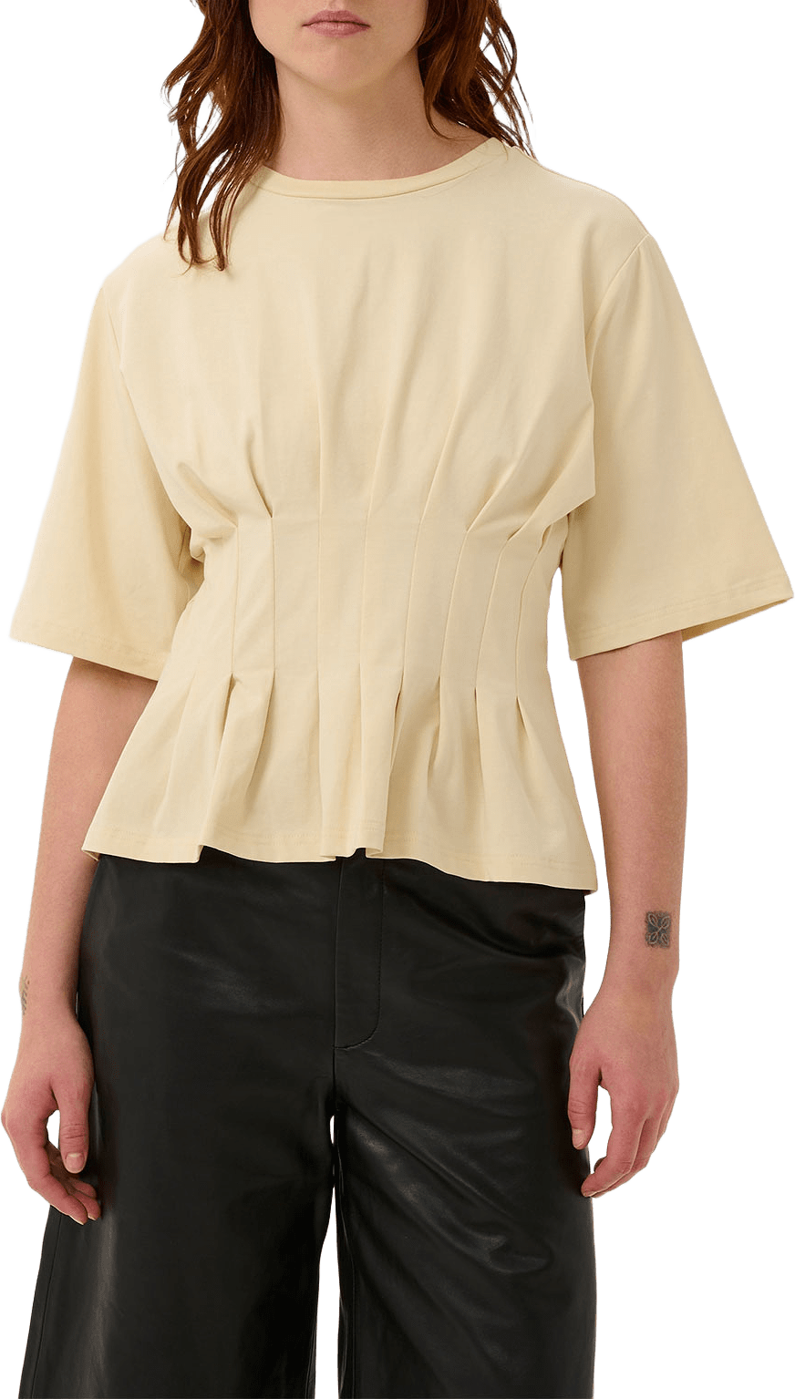 Återvunnen polyester som kommer från gamla PET-flaskor. Att använda återvunnen polyester minskar användningen av nya fibrer från icke förnyelsebara källor och bevarar jordens resurser.