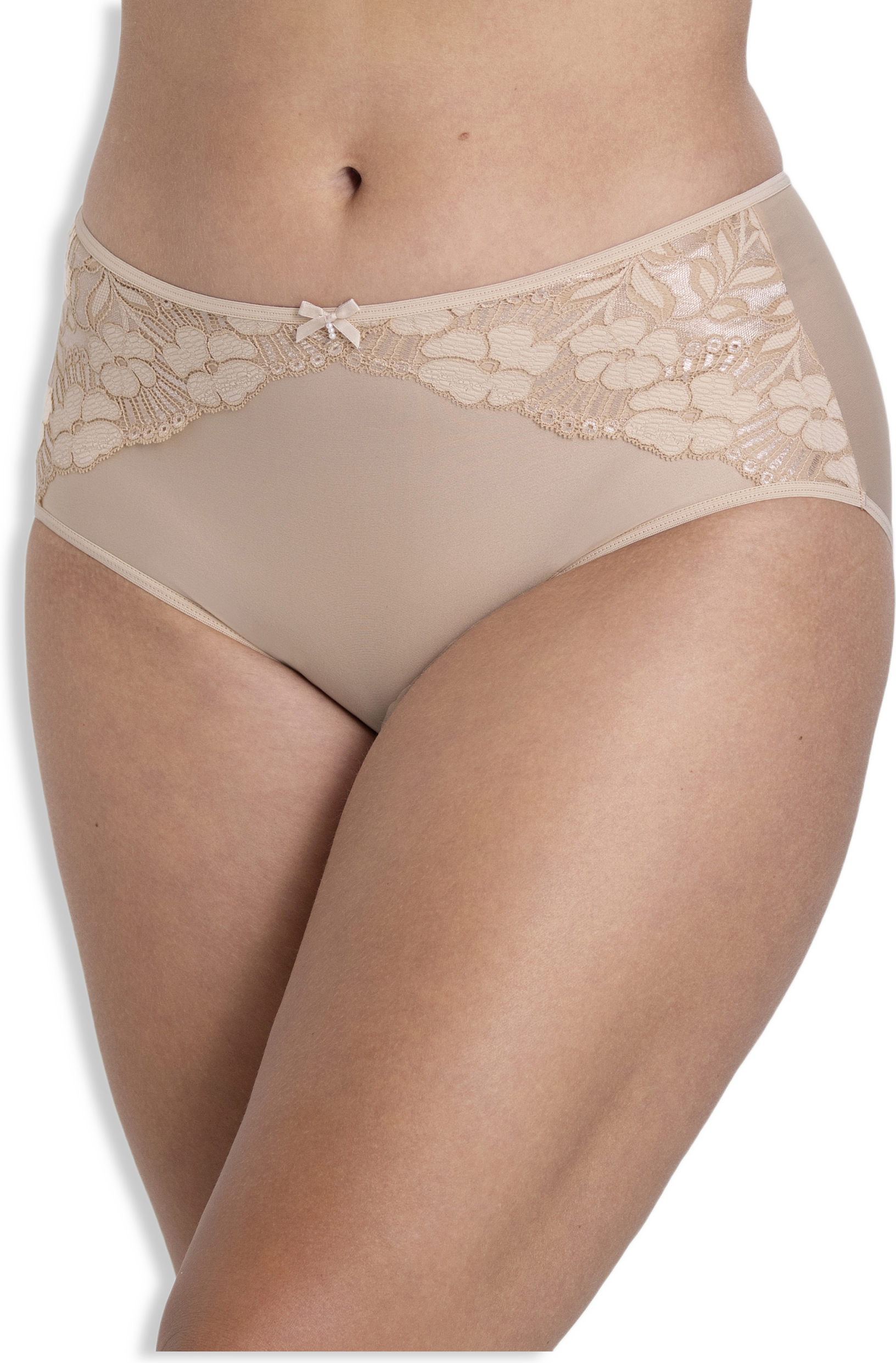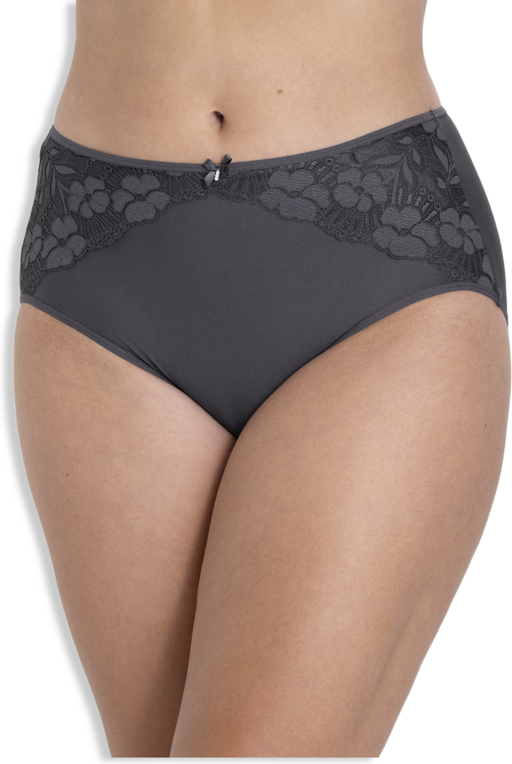 Nätt följsam trosa i mjuk microkvalitékänsla. Dekorativa spetsdetaljer på framstycket. Helslät baksida. Mjukt resårband i benringning och midja. Bomullsfodrad gren.
