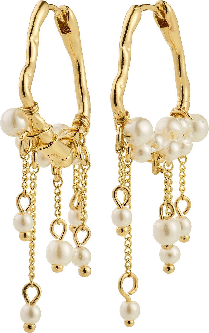 For every soul! Infuse your look with a magical vibe with the gold-plated JASPER hoops from Pilgrim - earrings featuring an organic, dreamcatcher-inspired design. Pearls and delicate chains float like small water bubbles, imparting a whimsical touch that ensures each movement is unique. A must-have for adventure lovers and anyone who appreciates a distinct, light, and fluid aesthetic that brings a touch of boho magic to everyday life! The earrings are crafted from 80% recycled material with care for our planet.