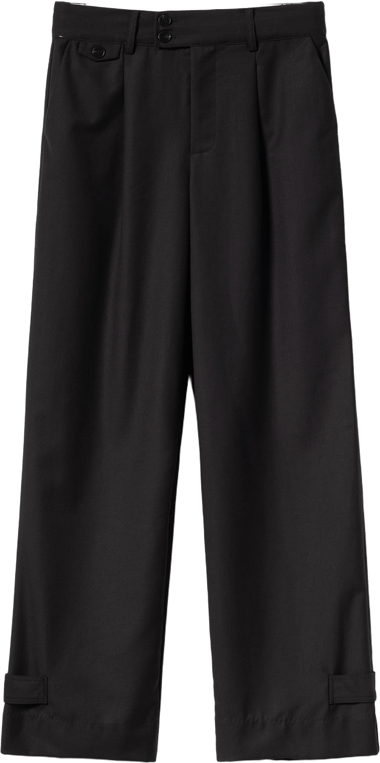 Joann Suit Pants har lös passform med framveck och midjemått. De har justerbara band nedtill, knappdetaljer vid midja och fickklaff, och finns i flera färger.