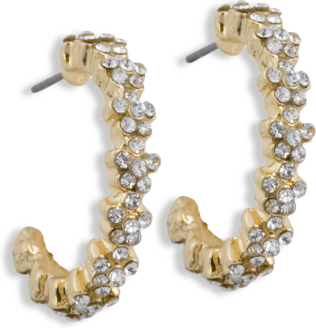 Guldpläterat örhänge med små klara glaskristaller. Stift i kirurgiskt stål. Nickelsäkert.