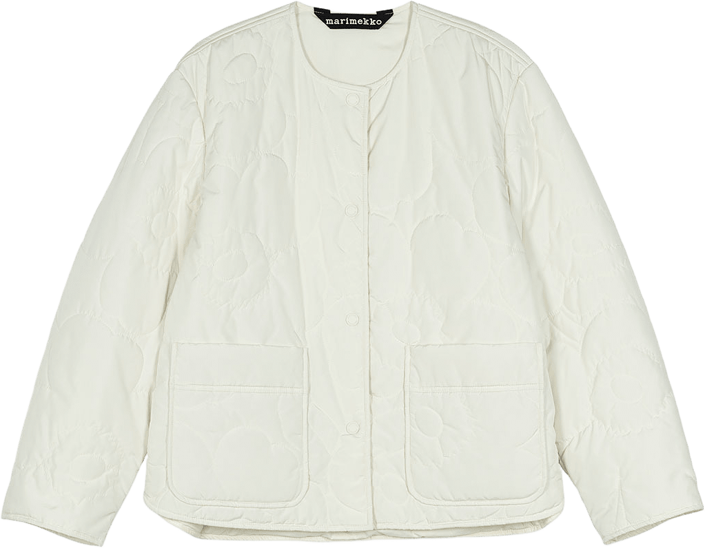 The quilted Kapseli lightweight padded jacket has a relaxed, straight fit and it features the stitched Piirto Unikko Pattern. The jacket has an O-neck, a snap button closure, patch pockets in the front, and an inside chest pocket with a concealed zipper closure. The round-shaped hem is longer in the back than the front and there are slits in the side seams.